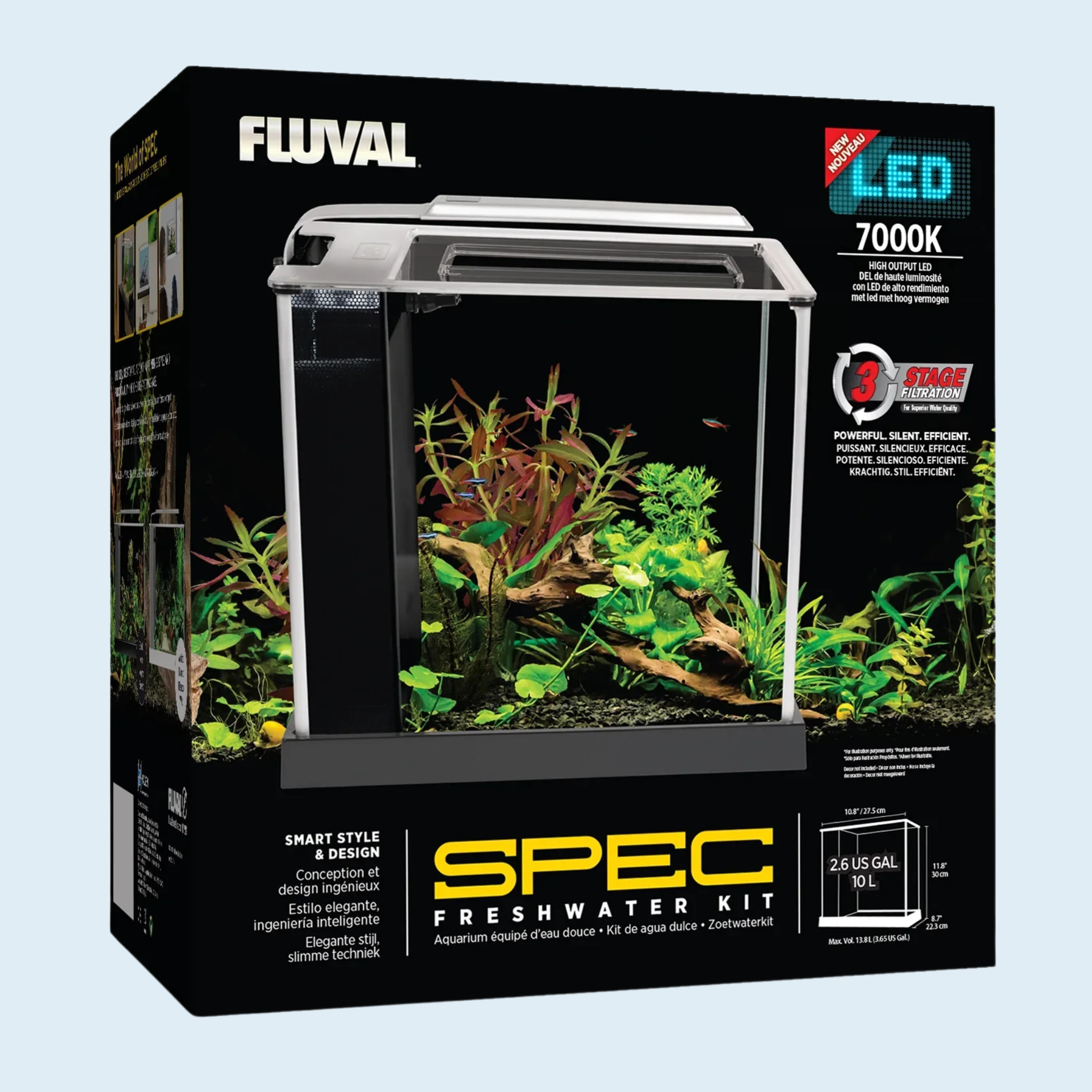 A 2.6-gallon etched glass tank with powerful 3-stage filtration and LED lighting.